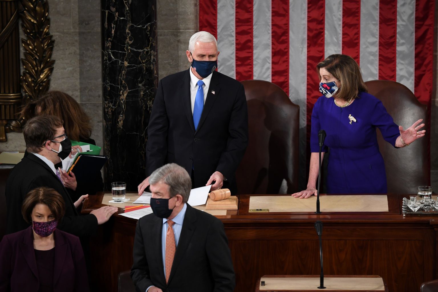 Pence and Speaker of the House Nancy Pelosi take part in a joint session of Congress to certify the 2020 election results on Jan 6, 2020.