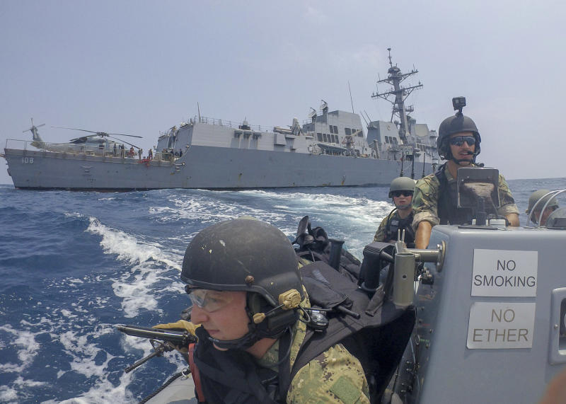 This US Navy file photo obtained on Sept 15 shows US Navy sailors riding a rigid-hull inflatable boat from the Arleigh Burke-class guided-missile destroyer USS Wayne E. Meyer during a drill as part of the Asean-US Maritime Exercise on Sept 5, 2019 in the Gulf of Thailand.