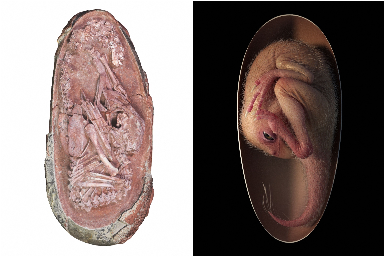 Baby Yingliang measures around 27cm long from head to tail, and lies inside a 17cm-long egg at the Yingliang Stone Nature History Museum.