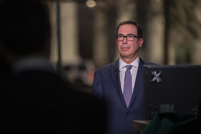 US Treasury Secretary Steven Mnuchin gives a television interview outside the White House in Washington, DC, on Jan 14, 2020.