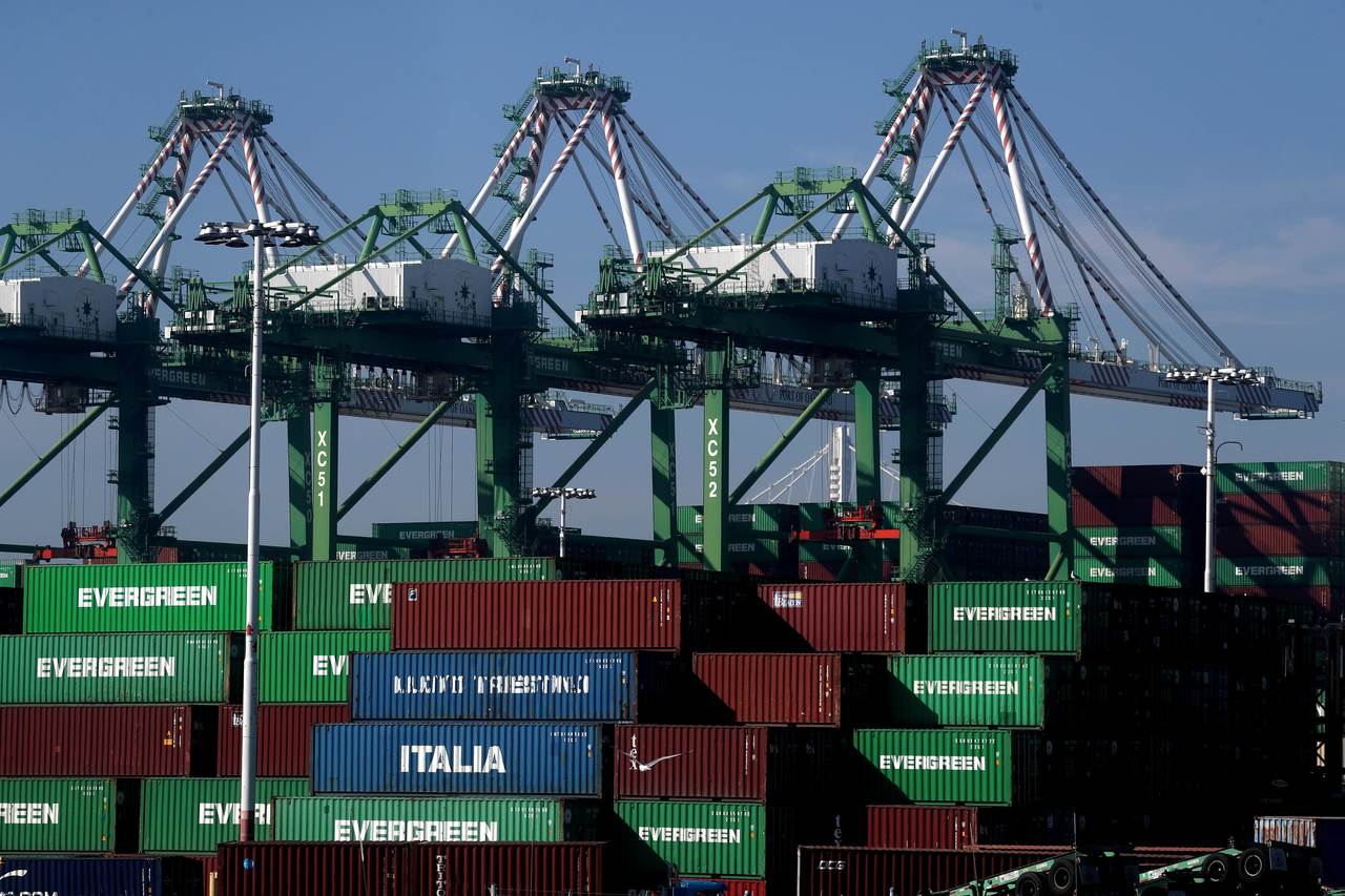 Stacks of shipping containers sit in a berth at the Port of Oakland, on Nov 18, 2019, in Oakland, California.