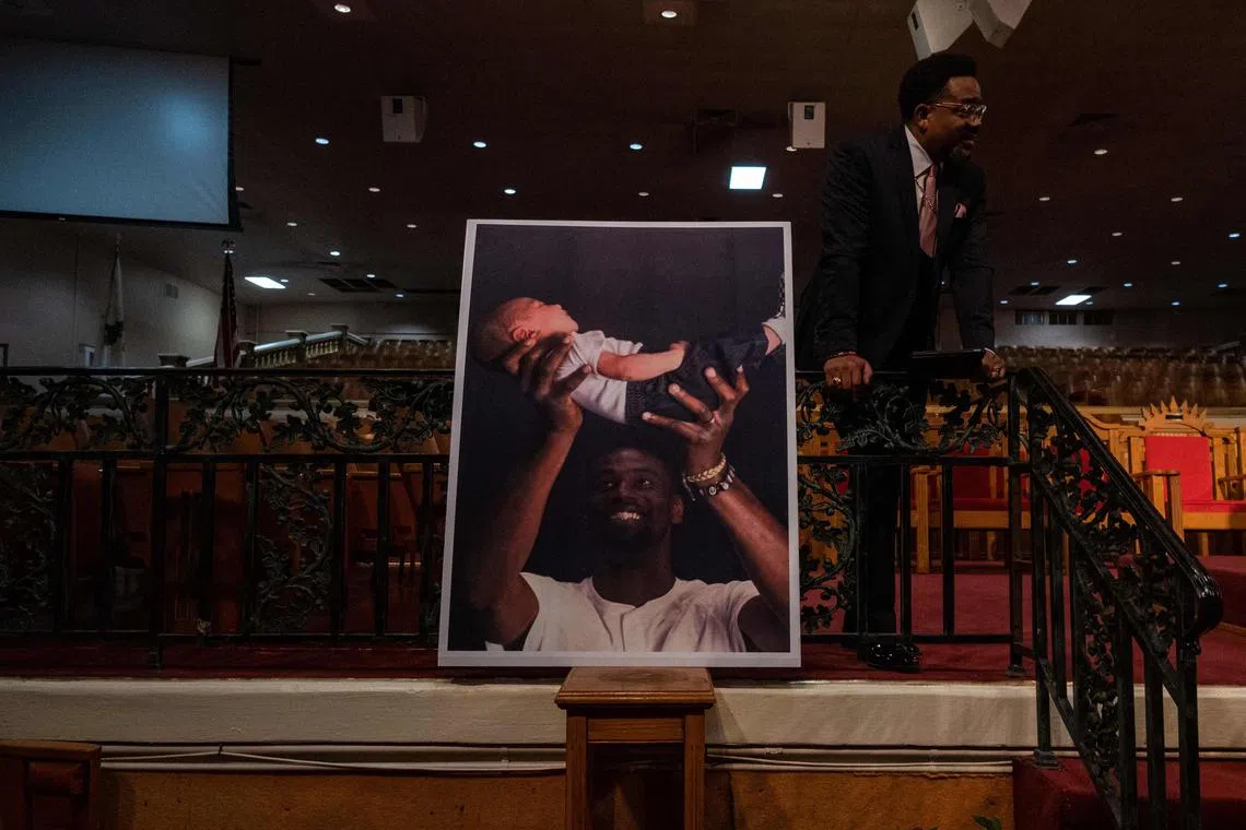 A poster of Mr Tyre Nichols holding his daughter is displayed during a news conference in Memphis, Tennessee, on Jan 31, 2023.