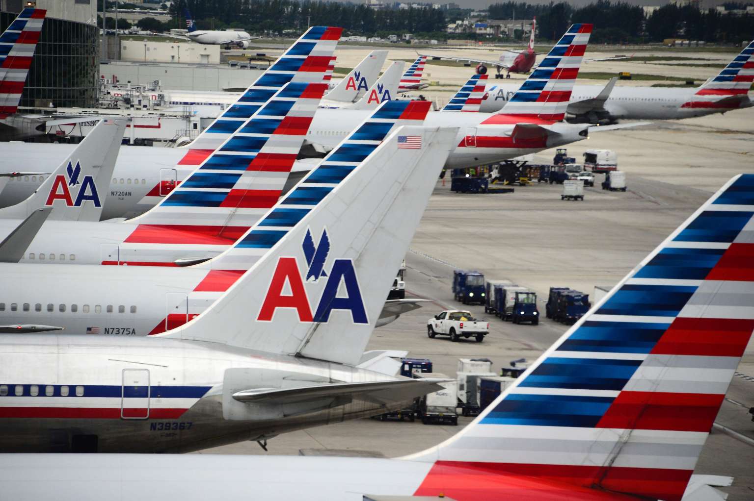 American Airlines passenger planes on the tarmac at Miami International Airport in the US.