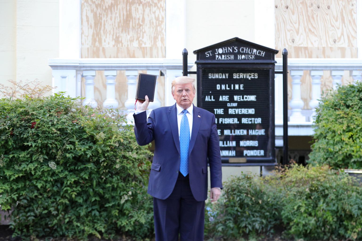 US President Donald Trump holds a Bible in front of St John's Episcopal Church in Washington, US, on June 1, 2020.