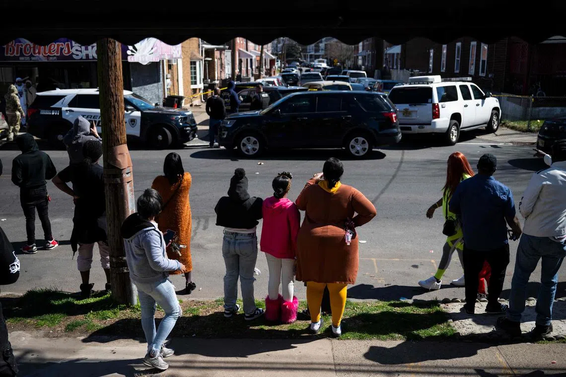 Onlookers watch as police deal with the situation in Trenton, New Jersey.