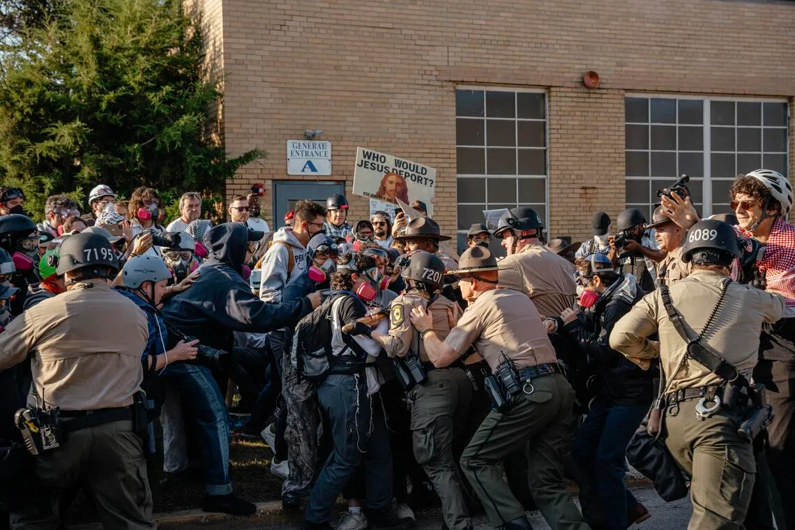 On at least four occasions, about a dozen demonstrators sitting on the ground attempting to block ICE vehicles from carrying detainees into the facility have been repelled by heavily armed ICE agents using physical force, chemical munitions and rubber bullets, evoking combat scenes.