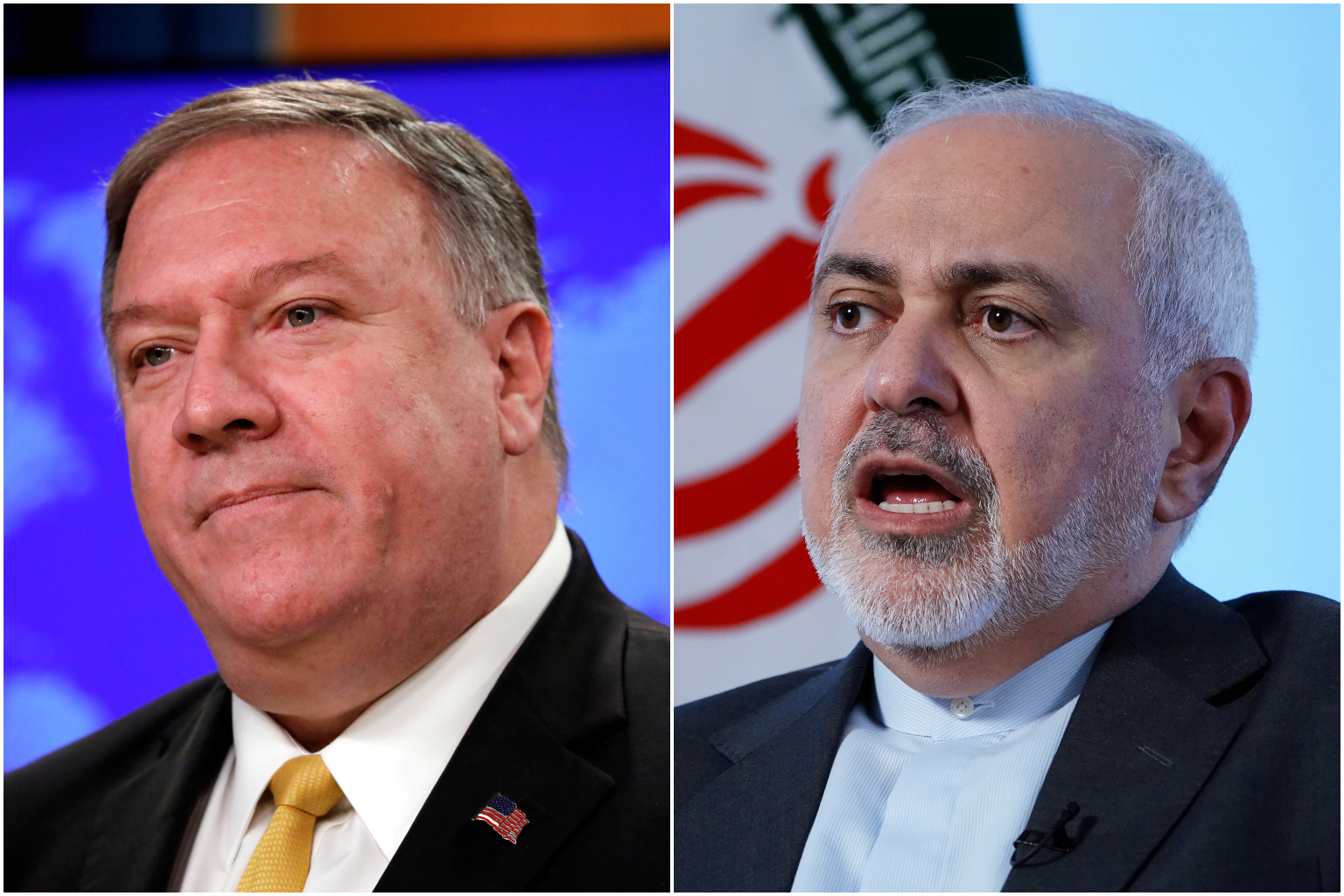 Iran Foreign Minister Mohammad Javad Zarif (right) is expected to meet with think tanks and journalists while in New York, and United States Secretary of State Mike Pompeo (left) said he will use the opportunity to spread falsehoods.