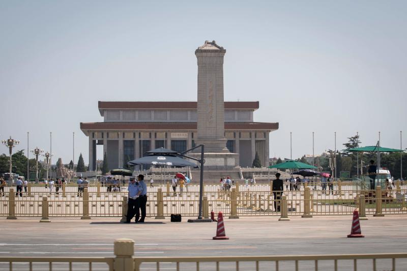 Police officers secure Tiananmen Square in Beijing, on June 3, 2019.