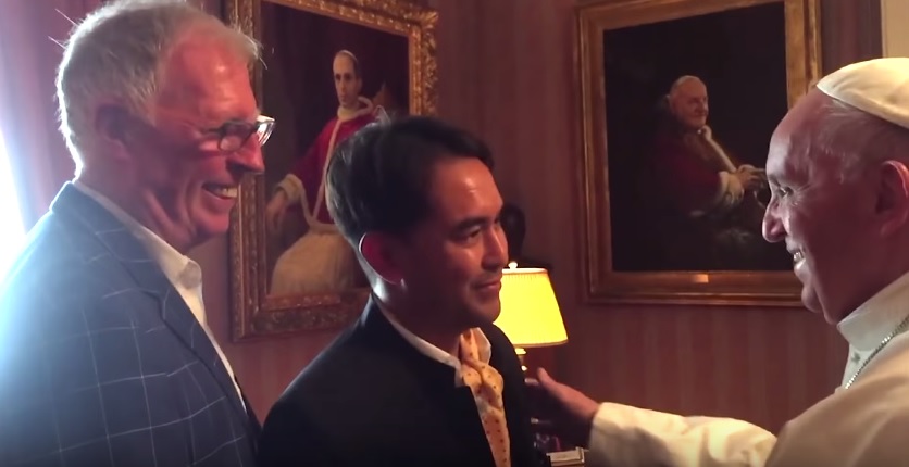 A screenshot from a video of the couple's meeting with Pope Francis.