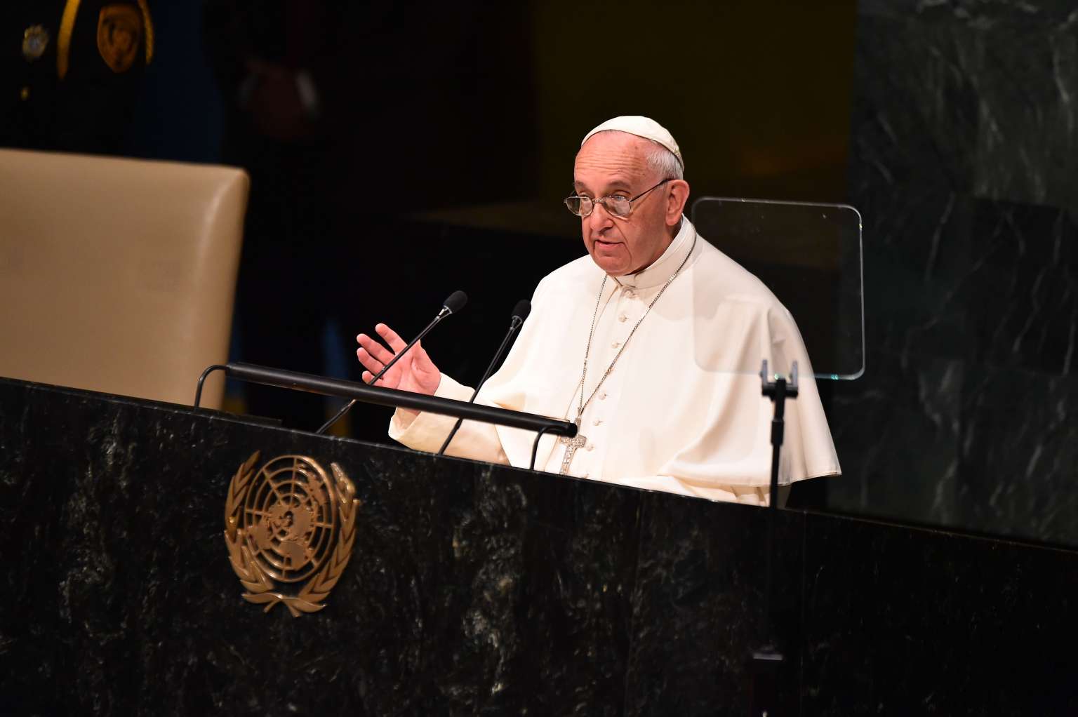 Pope Francis speaks at the UN General Assembly on Sept 25, 2015 at the United Nations in New York.