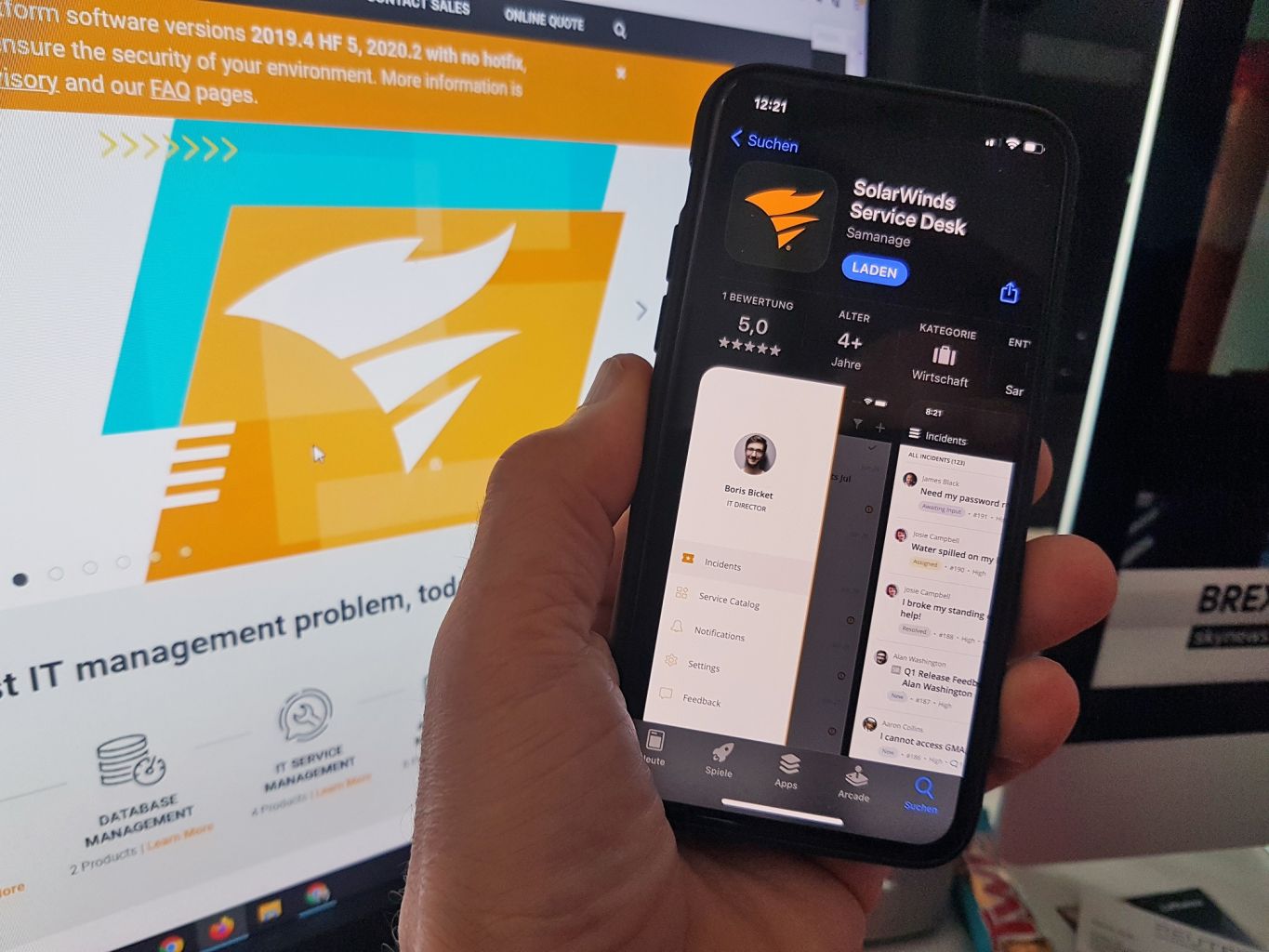An iPhone accesses an app by Texas-based SolarWinds, the target of a recent major hacker attack.