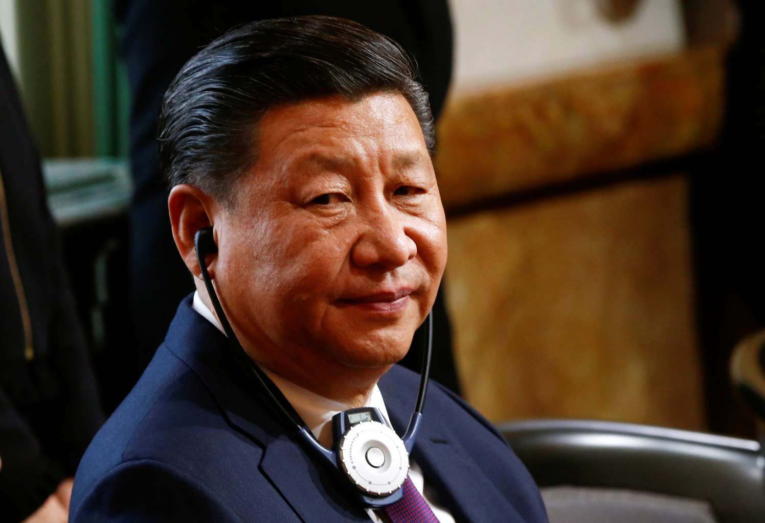 Chinese President Xi Jinping listens to a speech at the seat of the Swiss federal parliament, Jan 15, 2017.