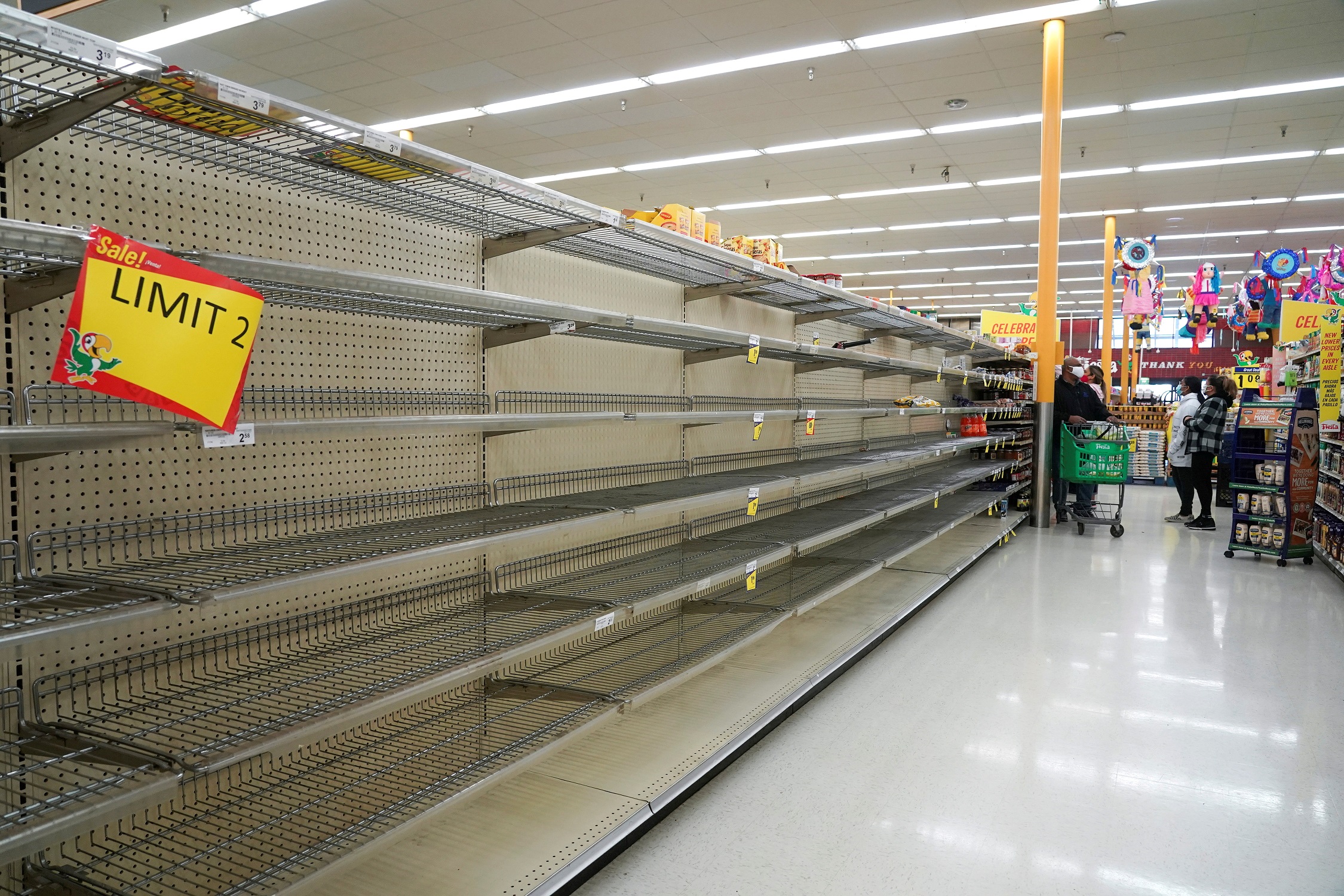 Empty shelves are seen at the snack section in Fiesta supermarket in Houston, Texas.