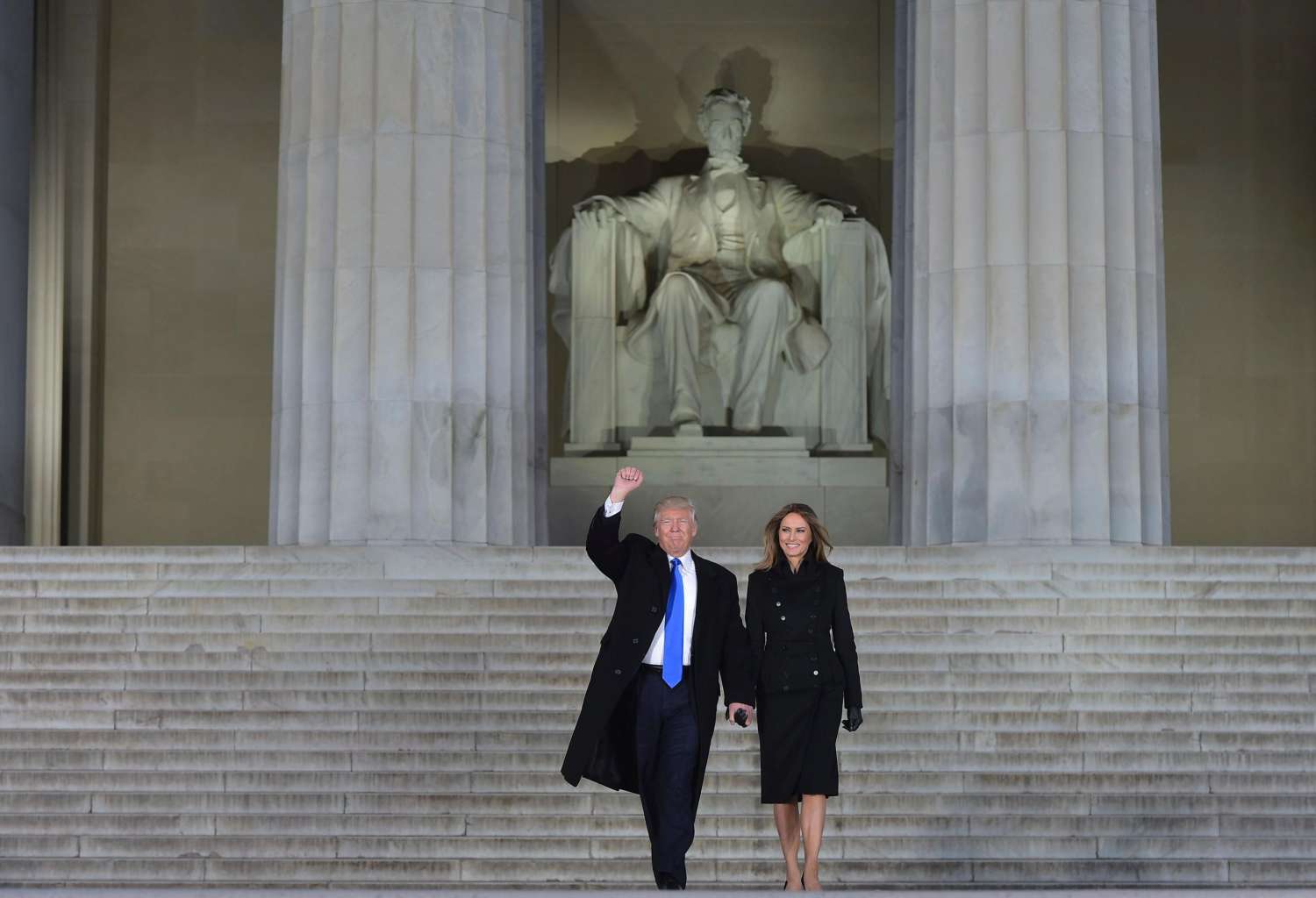 Donald Trump and his wife Melania arrive to attend an inauguration concert at the Lincoln Memorial in Washington, DC.