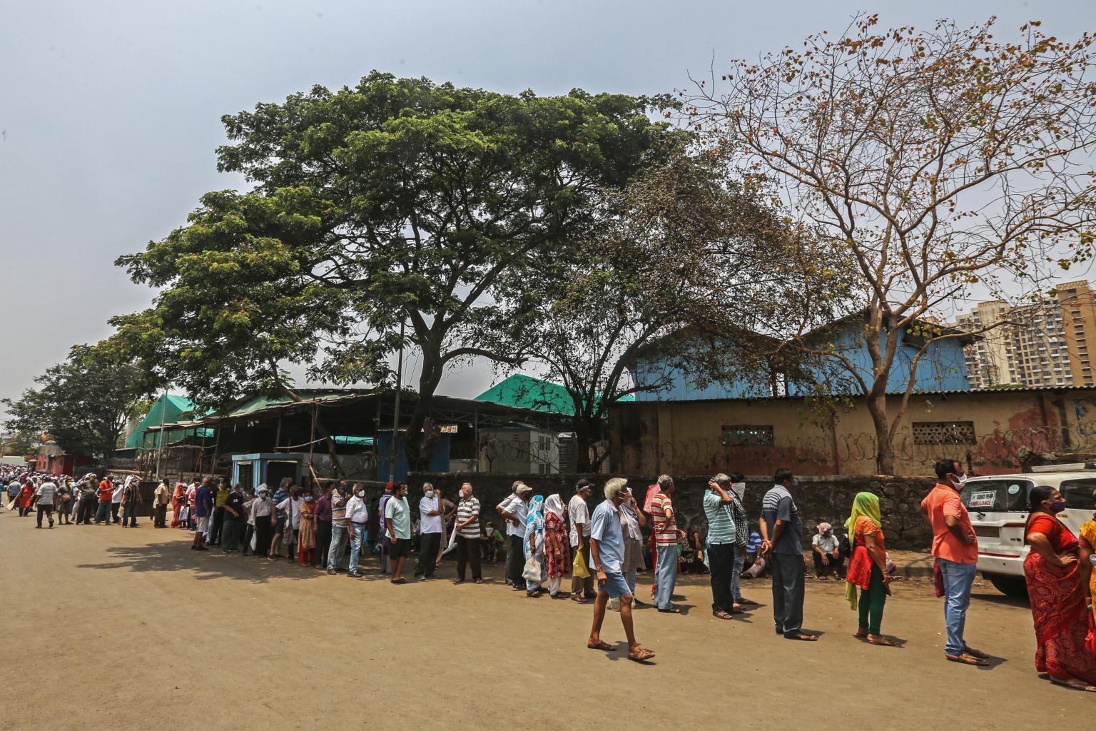 People waiting in queue to receive a shot of the Covid-19 vaccine in Mumbai, India, on April 26, 2021.