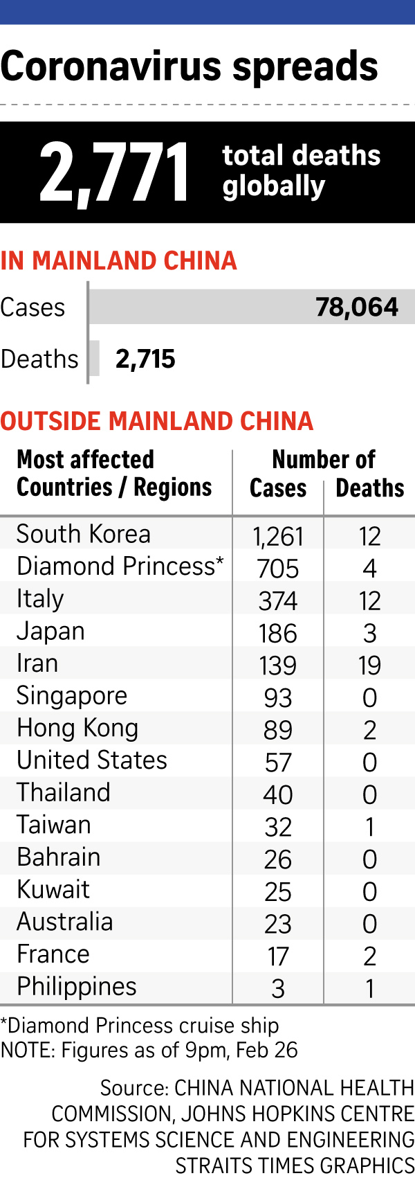 In the US, Dr Nancy Messonnier, director of the CDC's National Centre for Immunisation and Respiratory Diseases, told reporters on Tuesday: "Ultimately, we expect we will see community spread in the US."
