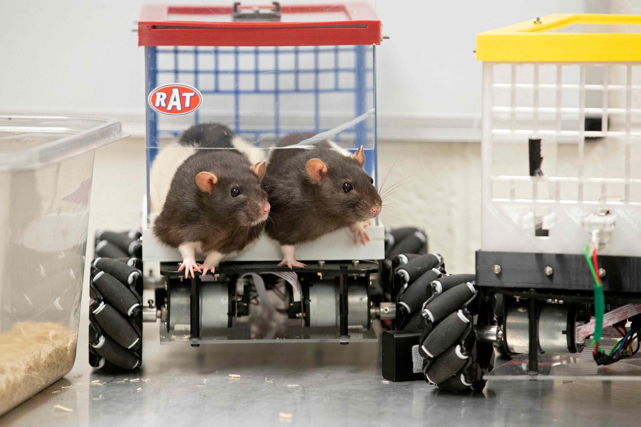Training was not simple: The team first tried having the rats nudge the driving control with their snouts, before finding the animals preferred to stand on their hind legs and use their front paws.