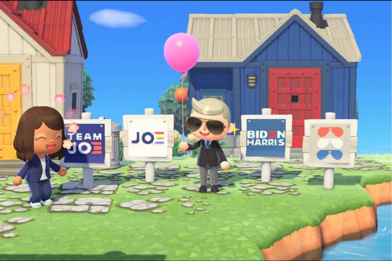 Gamers with a different political tilt can visit Democratic presidential contender Joe Biden at his headquarters in Animal Crossing, and display his campaign posters in virtual yards there.