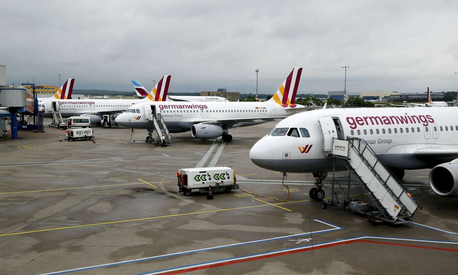 Delayed Germanwings planes wait on the tarmac following a security alert at Cologne airport, in Cologne, Germany, on May 30, 2016.