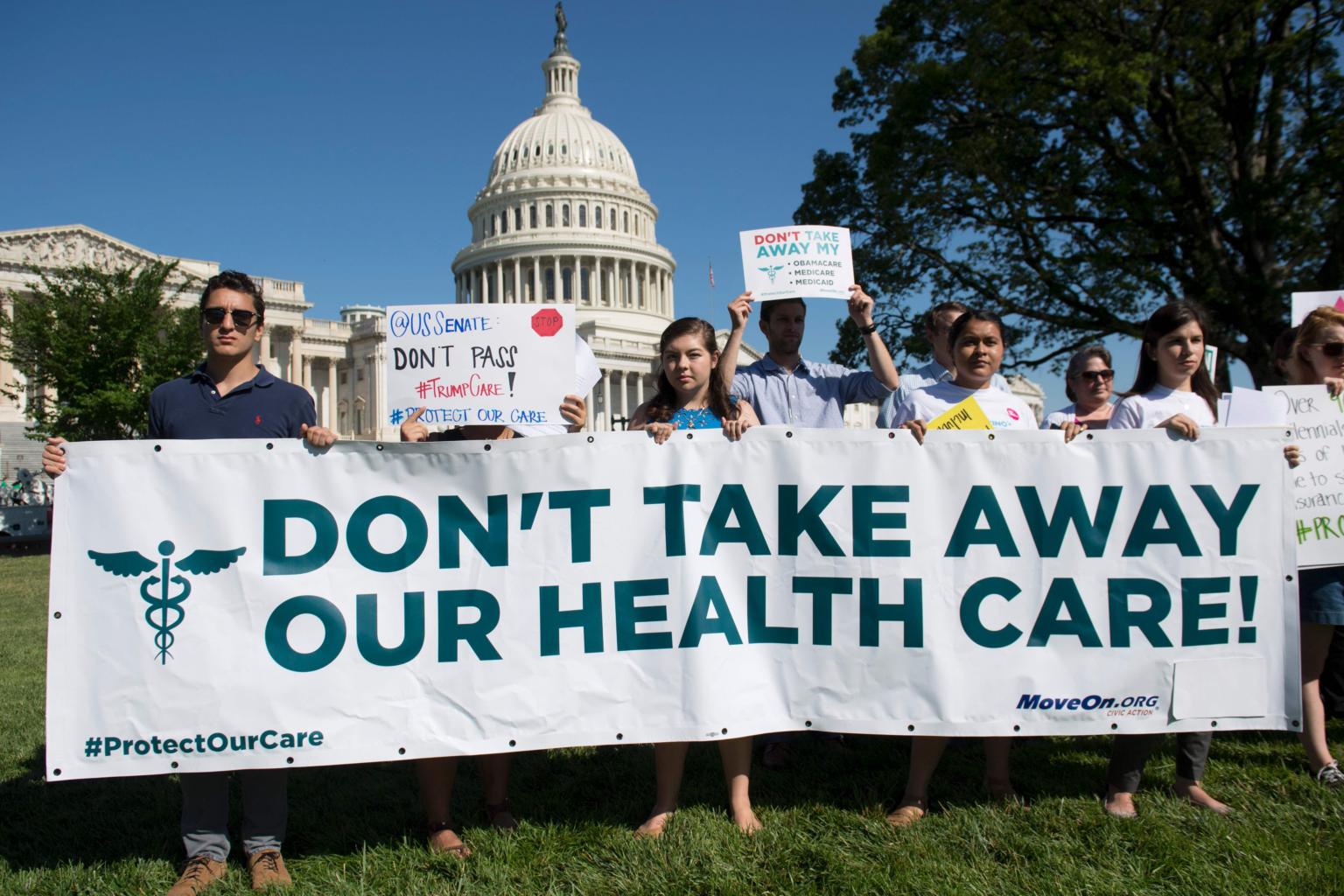 Protesters against the US Senate Republicans' healthcare bill holding a rally outside the US Capitol in Washington, DC.