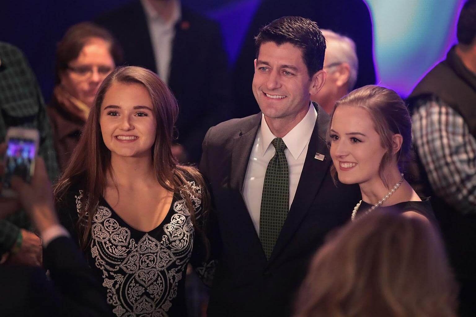 US House Speaker Paul Ryan greets supporters at an election-night rally on Nov 8, 2016 in Janesville, Wisconsin.