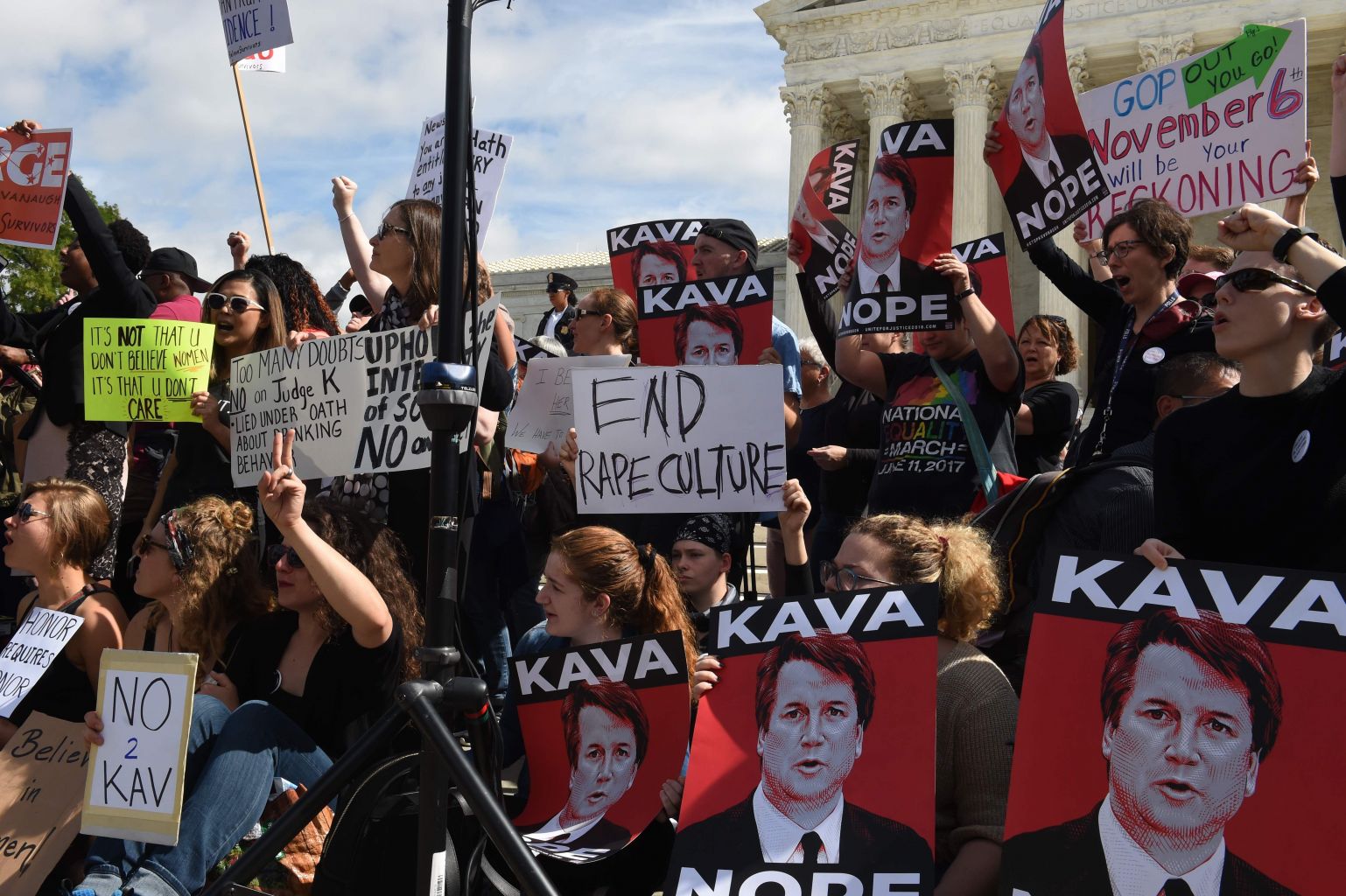 Activists demonstrate against US Supreme Court nominee Brett Kavanaugh in front of the court in Washington, on Sept 28, 2018.