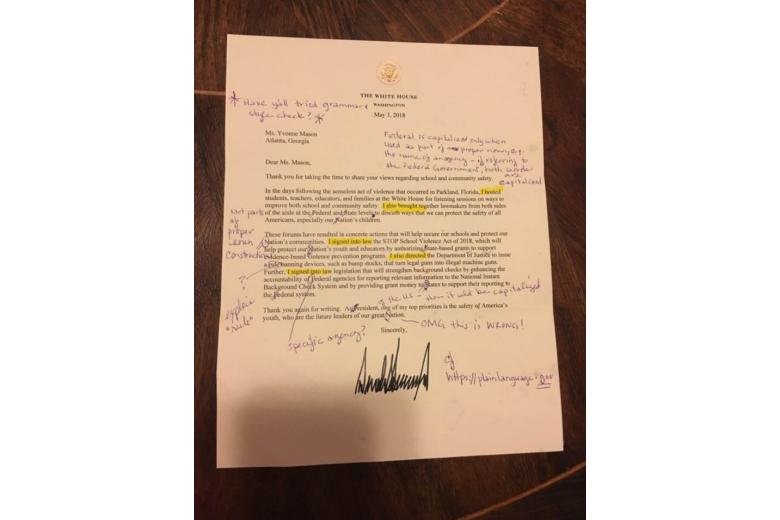 Retired English teacher corrects White House letter signed by Trump, sends it back