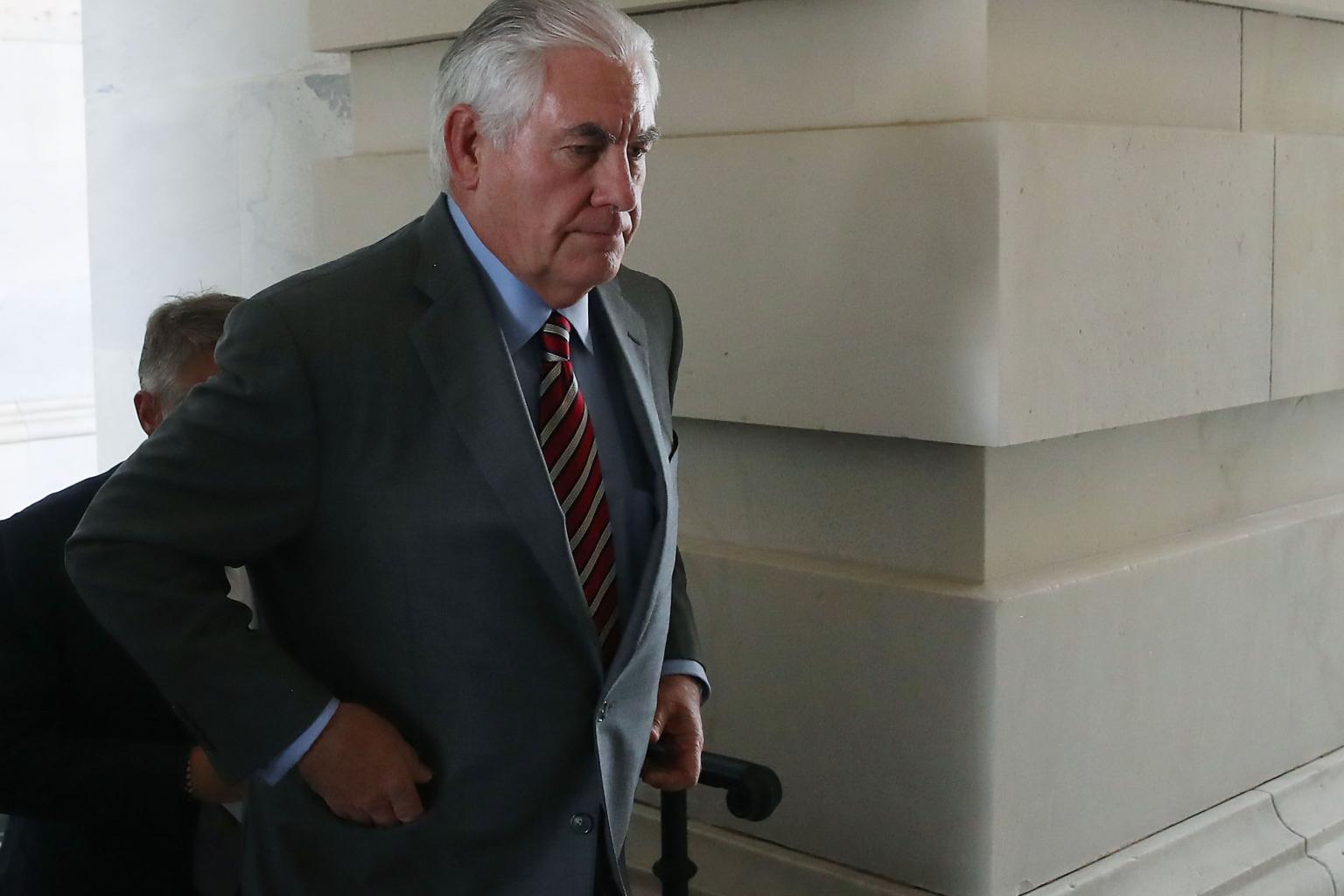 US Secretary of State Rex Tillerson arrives at the Capitol to join Secretary of Defense Jim Mattis in briefing House members on the situation with ISIS.