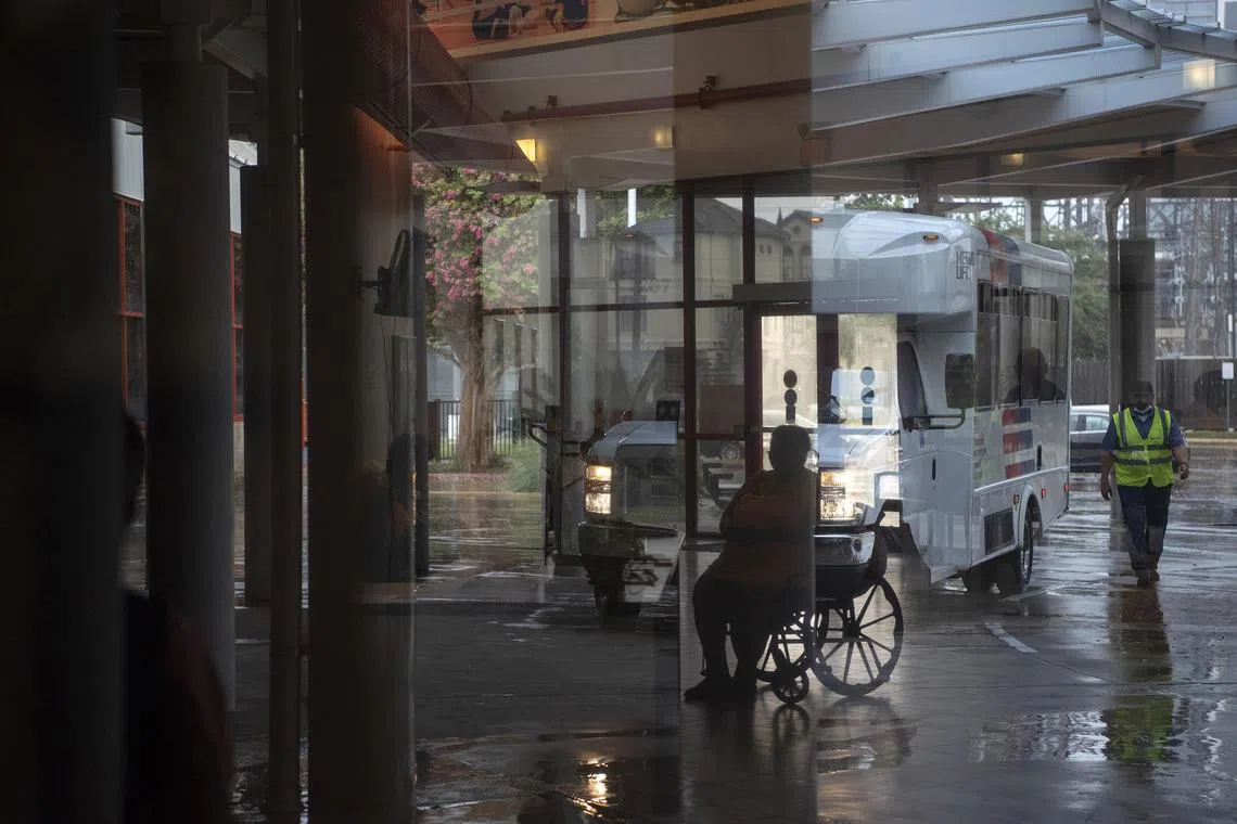 A bus dropping people off at the Metropolitan Multi-Service Centre, which operates as a cooling centre when temperatures are high, in Houston on Friday.
