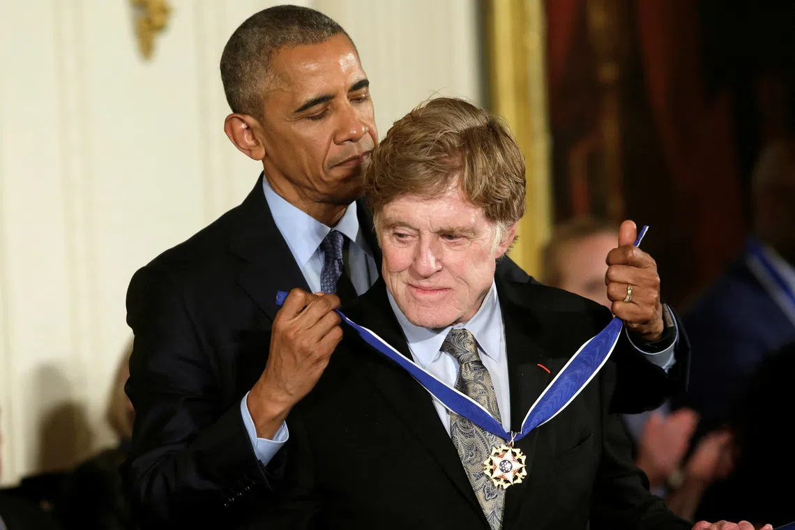 Then US President Barack Obama awarding Redford the Presidential Medal of Freedom at the White House in 2016.