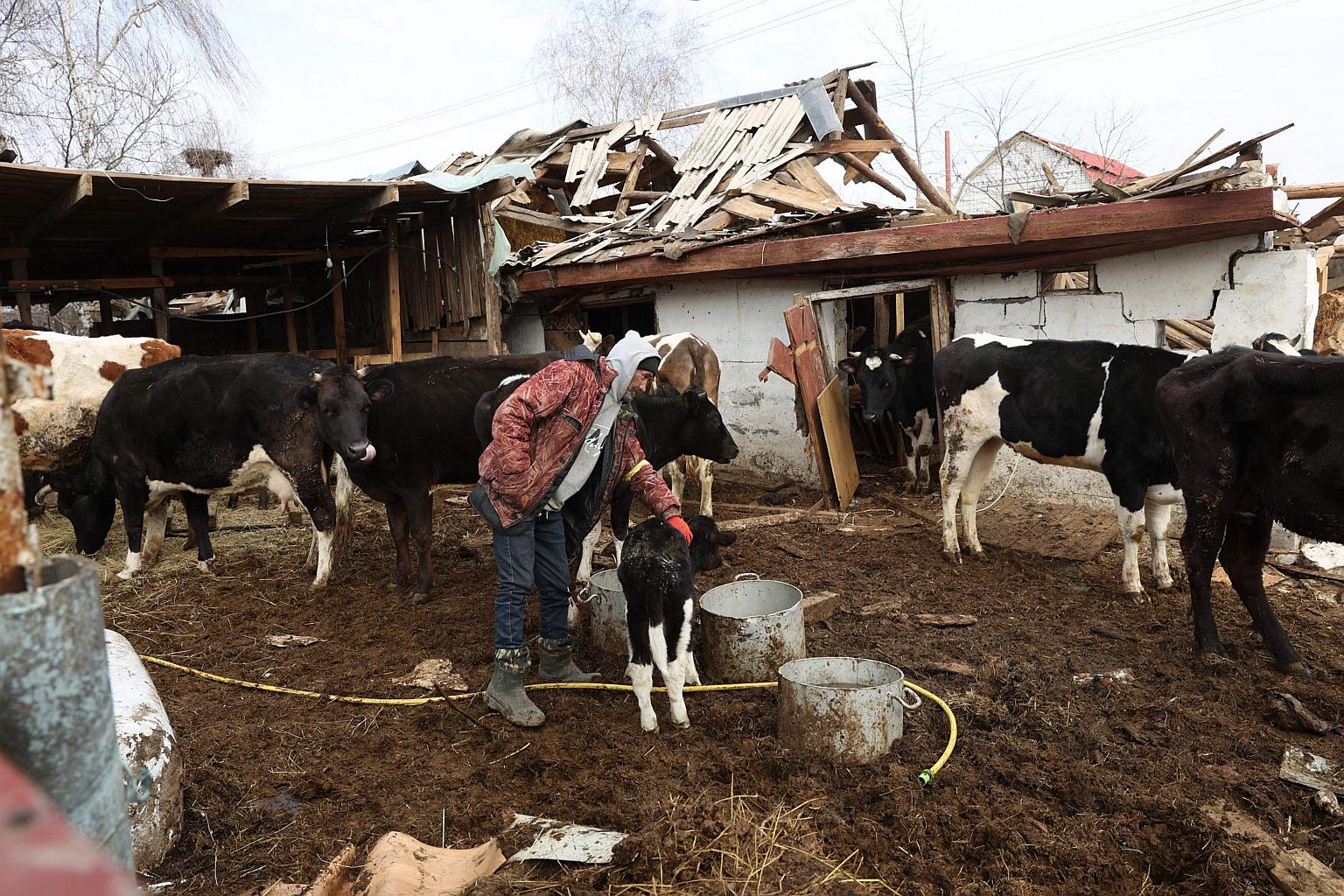 A local farmer stands in a ruined yard, in a village in Kyiv, Ukraine, on March 28, 2022.