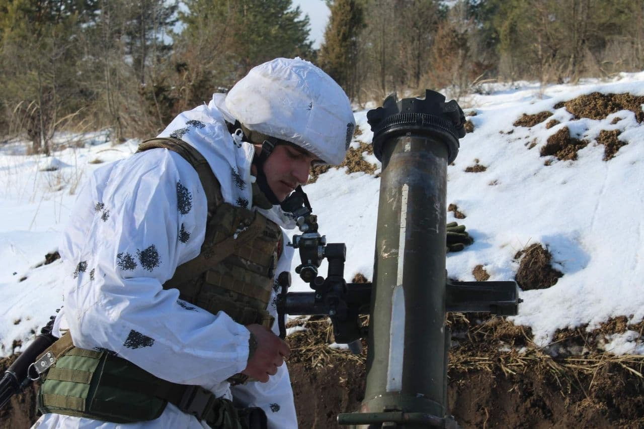 A Ukrainian serviceman takes part in a military exercise near Lviv, Ukraine, on Feb 11, 2022.