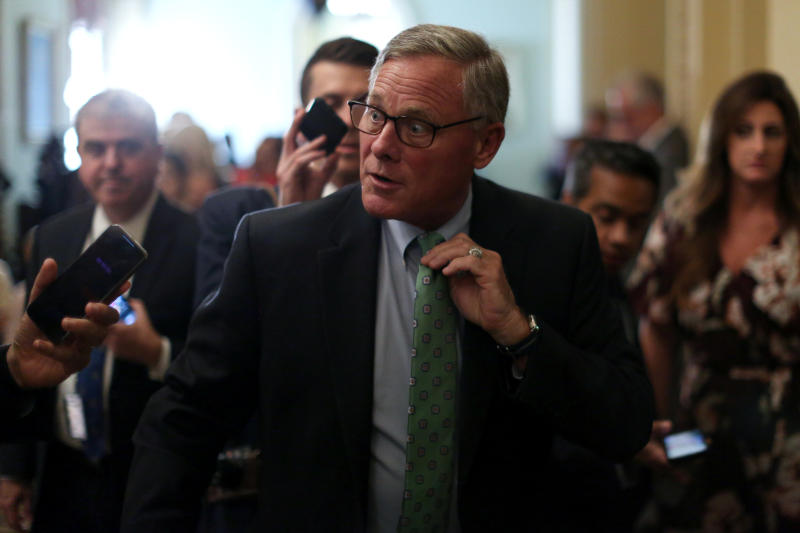 In a photo taken on Sept 10, 2019, US Senator Richard Burr speaks with reporters after the weekly Senate Republican caucus luncheon at the US Capitol in Washington DC.
