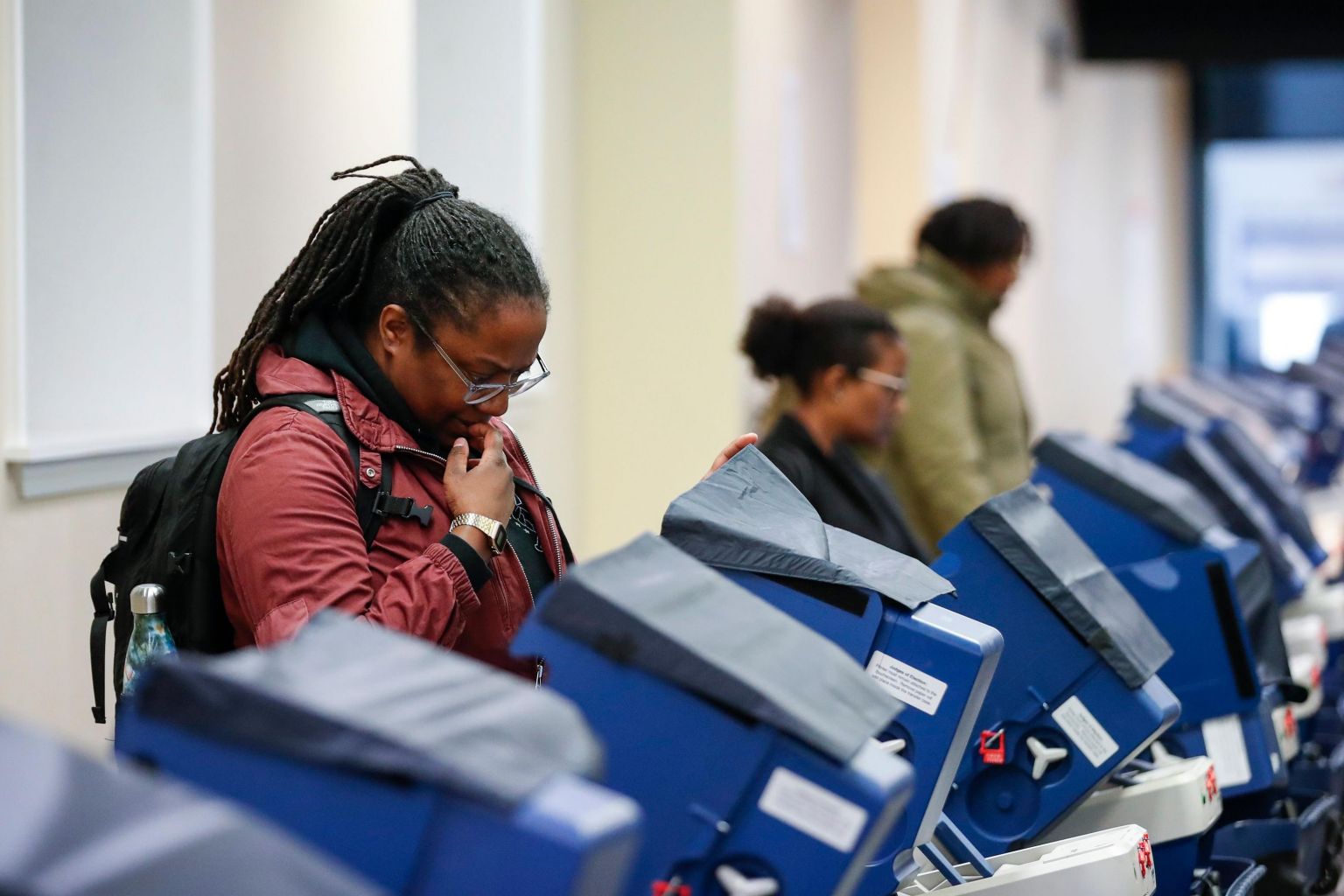 Voters casting their ballots at a polling place in downtown Chicago, Illinois, on April 2, 2019.