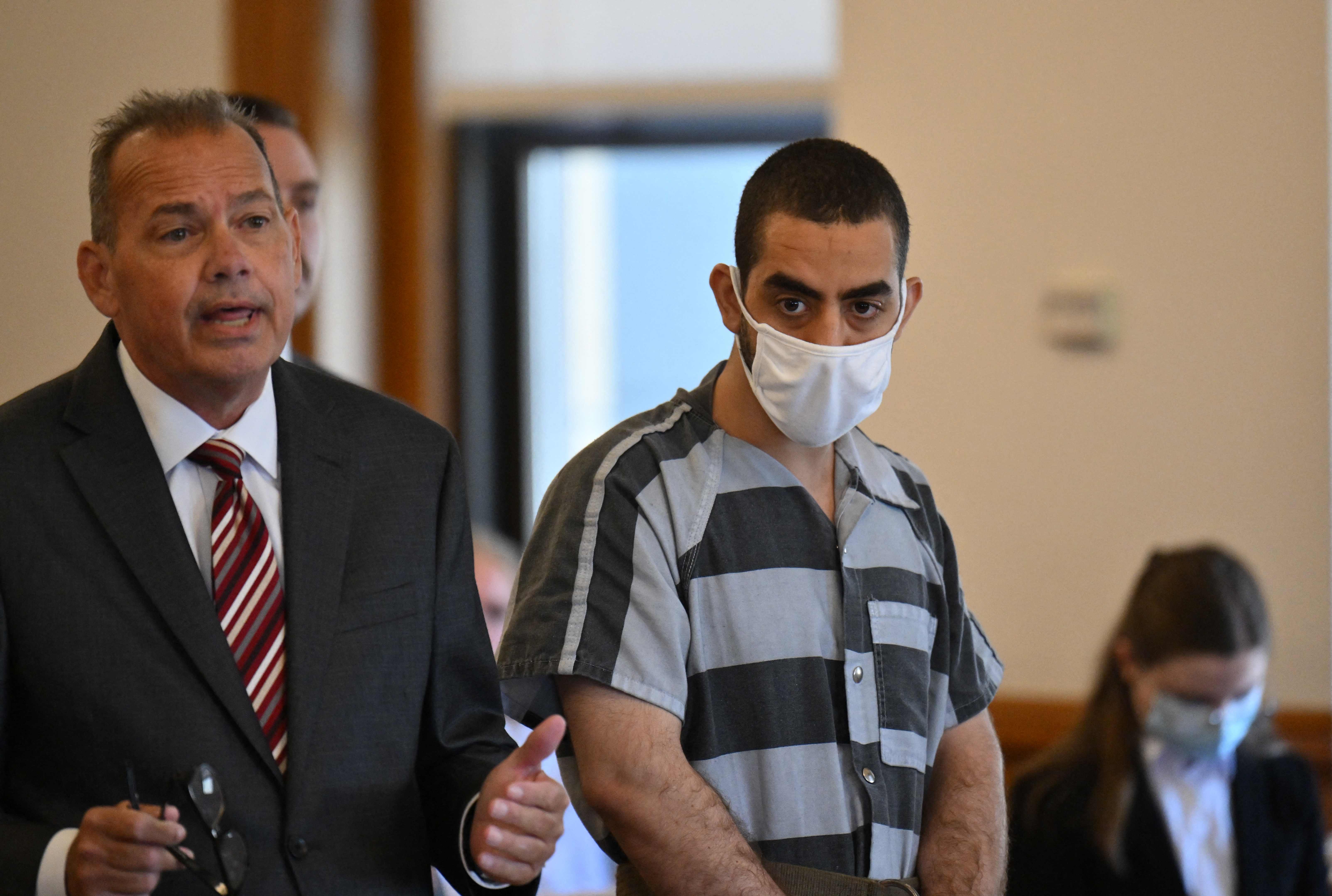 Suspect Hadi Matar appears in court for a procedural hearing in Mayville, New York, on Aug 18, 2022.