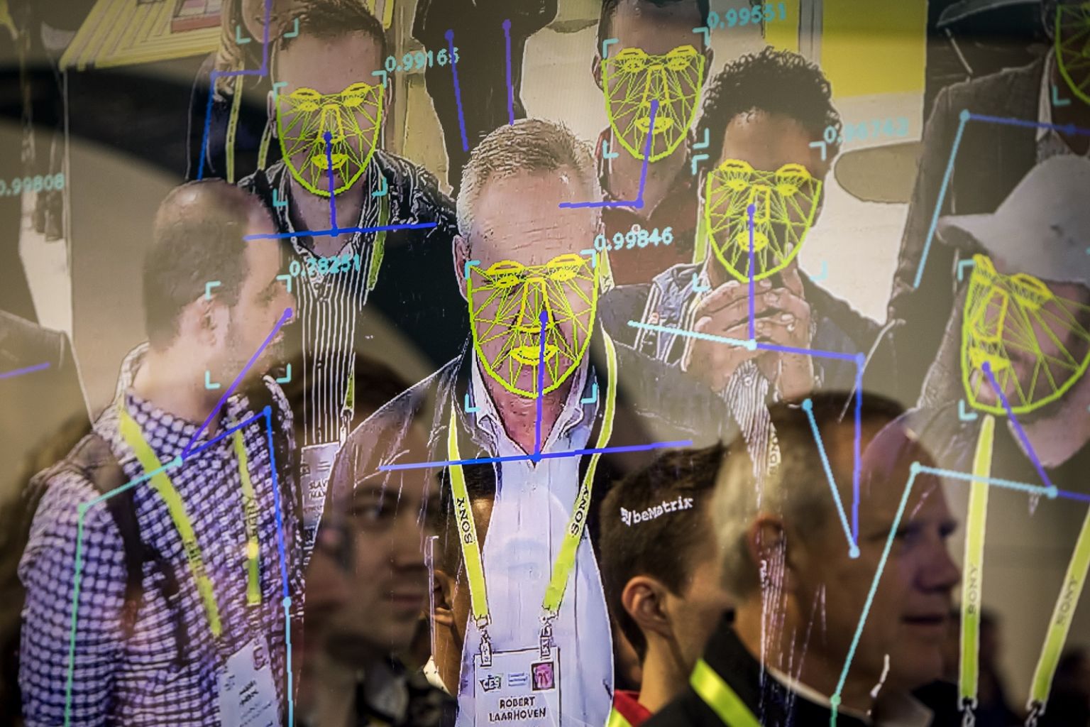 Attendees interact with a facial recognition demonstration during the Consumer Electronics Show in Las Vegas, Jan 8, 2019. The San Francisco board of supervisors has enacted the first ban by a major American city on the use of facial recognition technology by police and other municipal agencies.