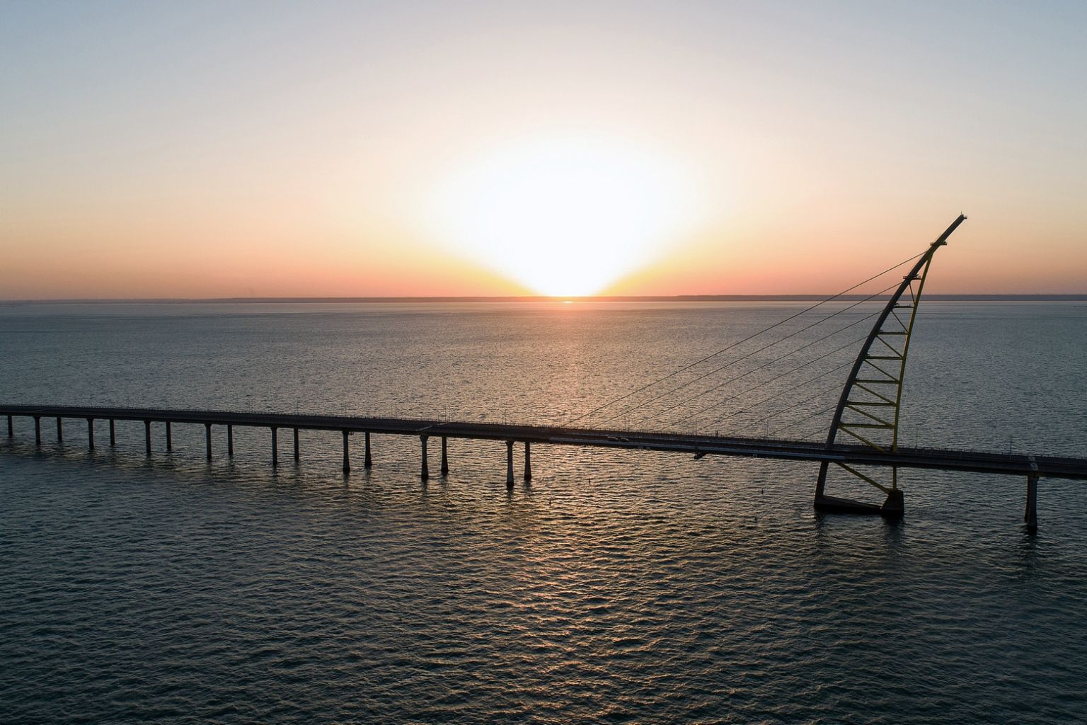 A view of the sunset from the Sheikh Jaber al-Ahmad Al-Sabah Causeway in Kuwait Bay, Kuwait, on April 23, 2019.