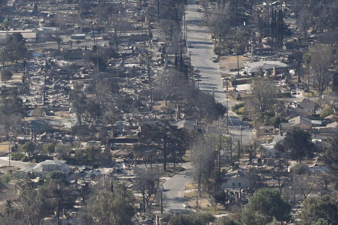 Damaged and destroyed buildings in a residential neighbourhood after the Eaton fire in Altadena, California.