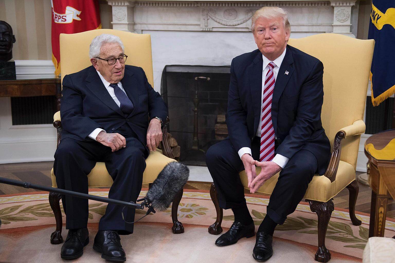US President Donald Trump (right) speaks with former US Secretary of State Henry Kissinger during a meeting in the Oval Office of the White House.