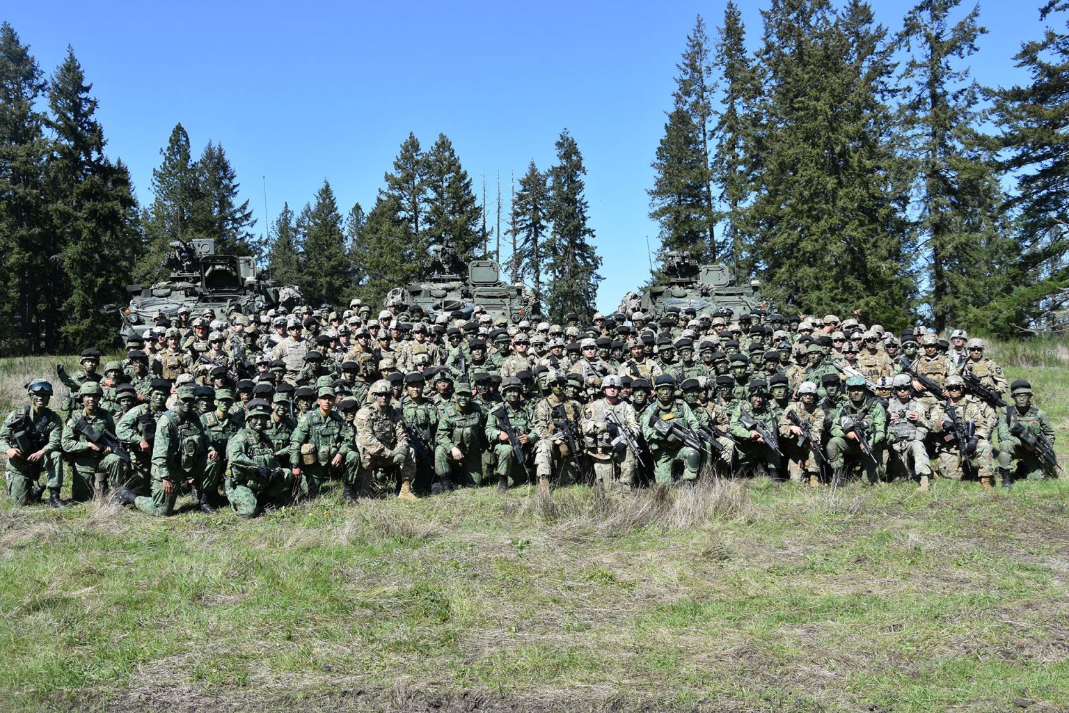 Singapore and the United States Army troops at the closing ceremony of Exercise Lightning Strike at the Joint Base Lewis-McChord in Washington.