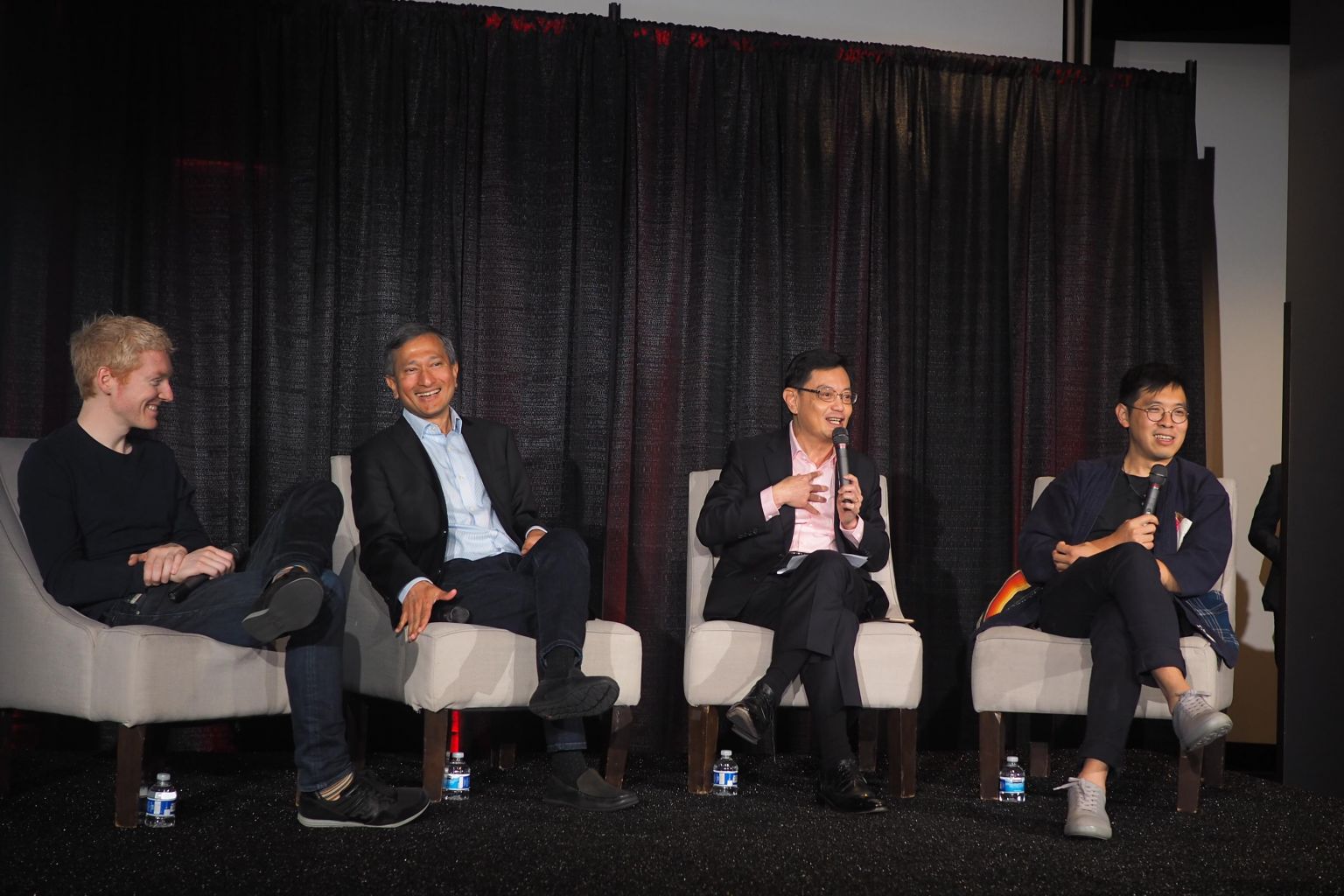 (From left) Mr Patrick Collison, CEO of Stripe, Foreign Minister Vivian Balakrishnan, Finance Minister Heng Swee Keat, and Economic Development Board managing director Chng Kai Fong at the Tech Forum in San Francisco on April 20, 2019.