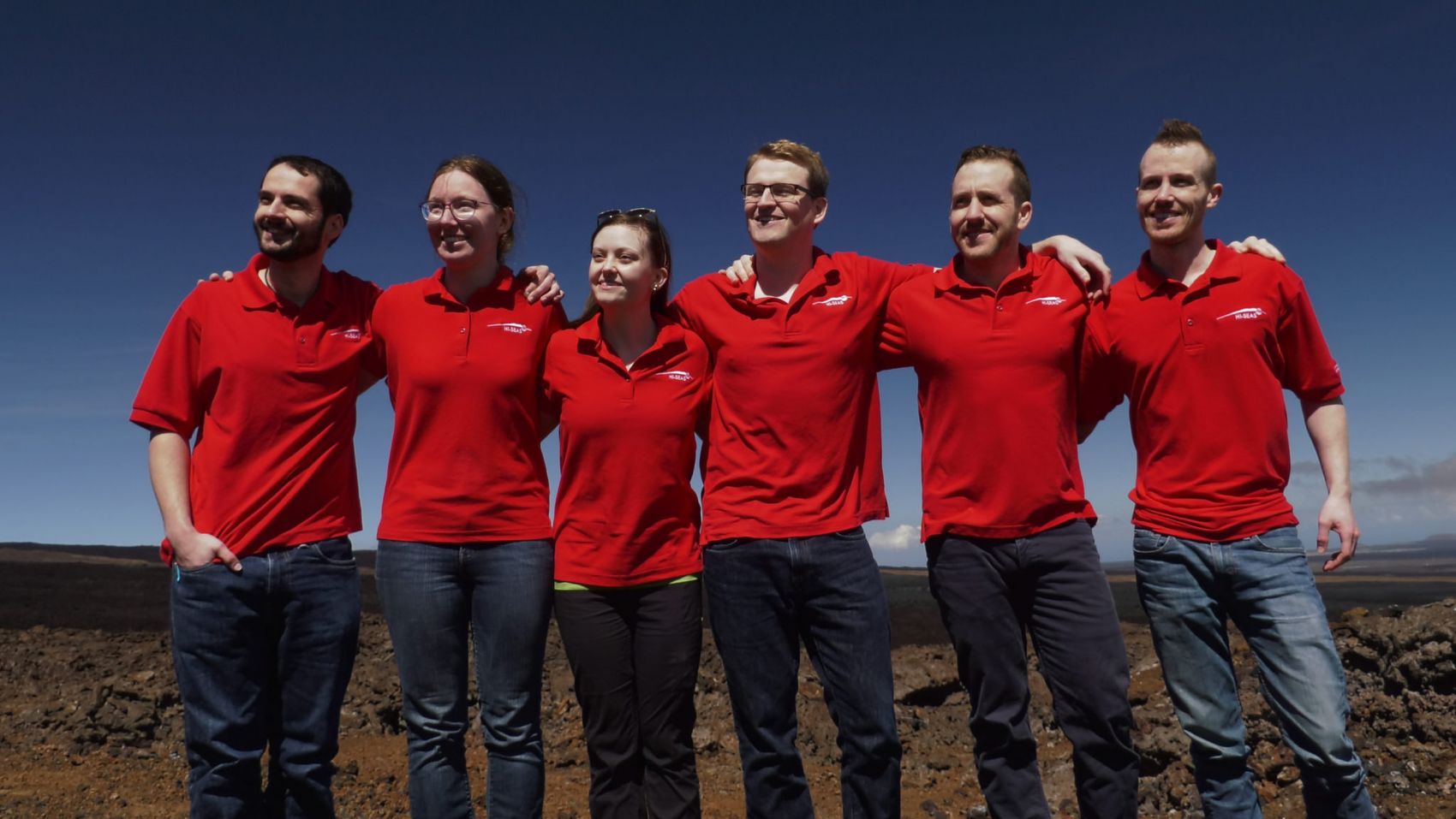 The Hi-Seas V crew poses for a group photo after completing their mock Mars mission.