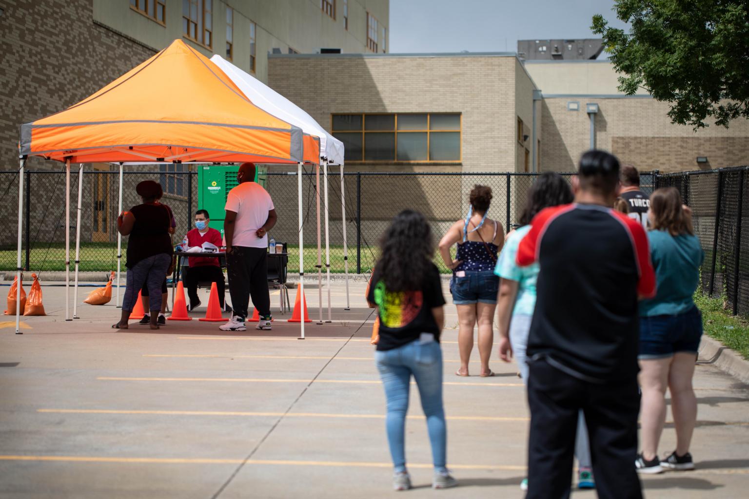 Patients wait in line at a Covid-19 testing site in Dallas, Texas, on June 27, 2020.