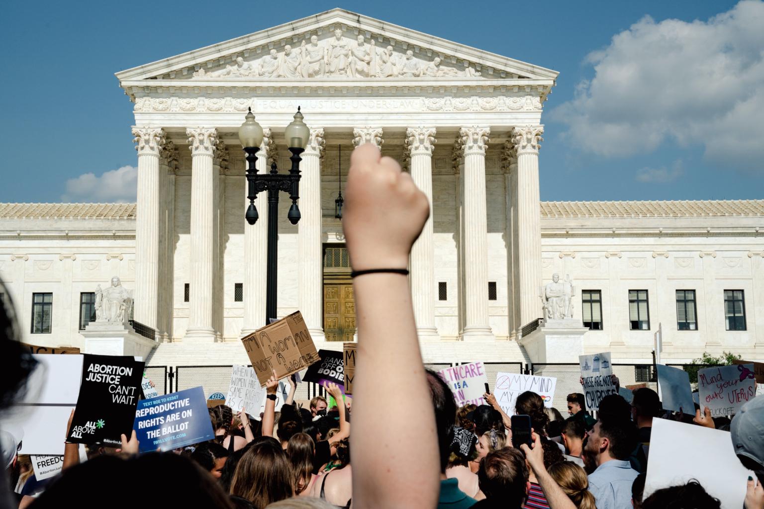 Abortion rights activists protest outside the US Supreme Court after it eliminated the constitutional right to abortion.
