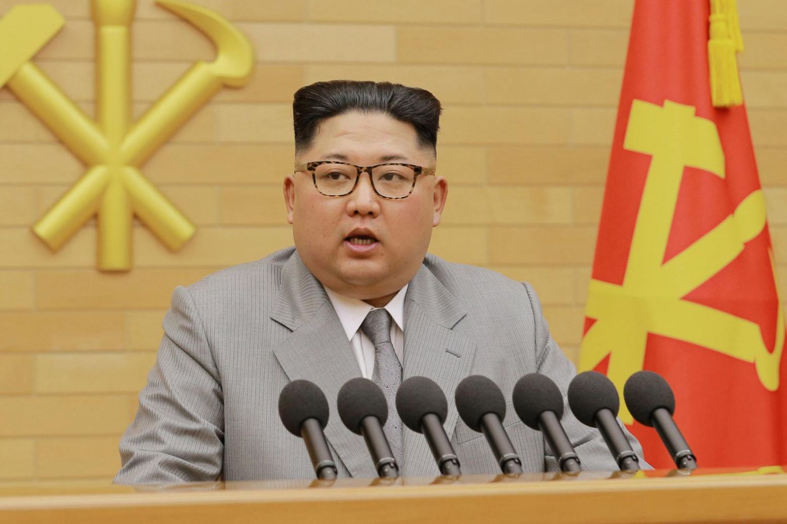 North Korea's leader Kim Jong Un giving a New Year's Day speech.