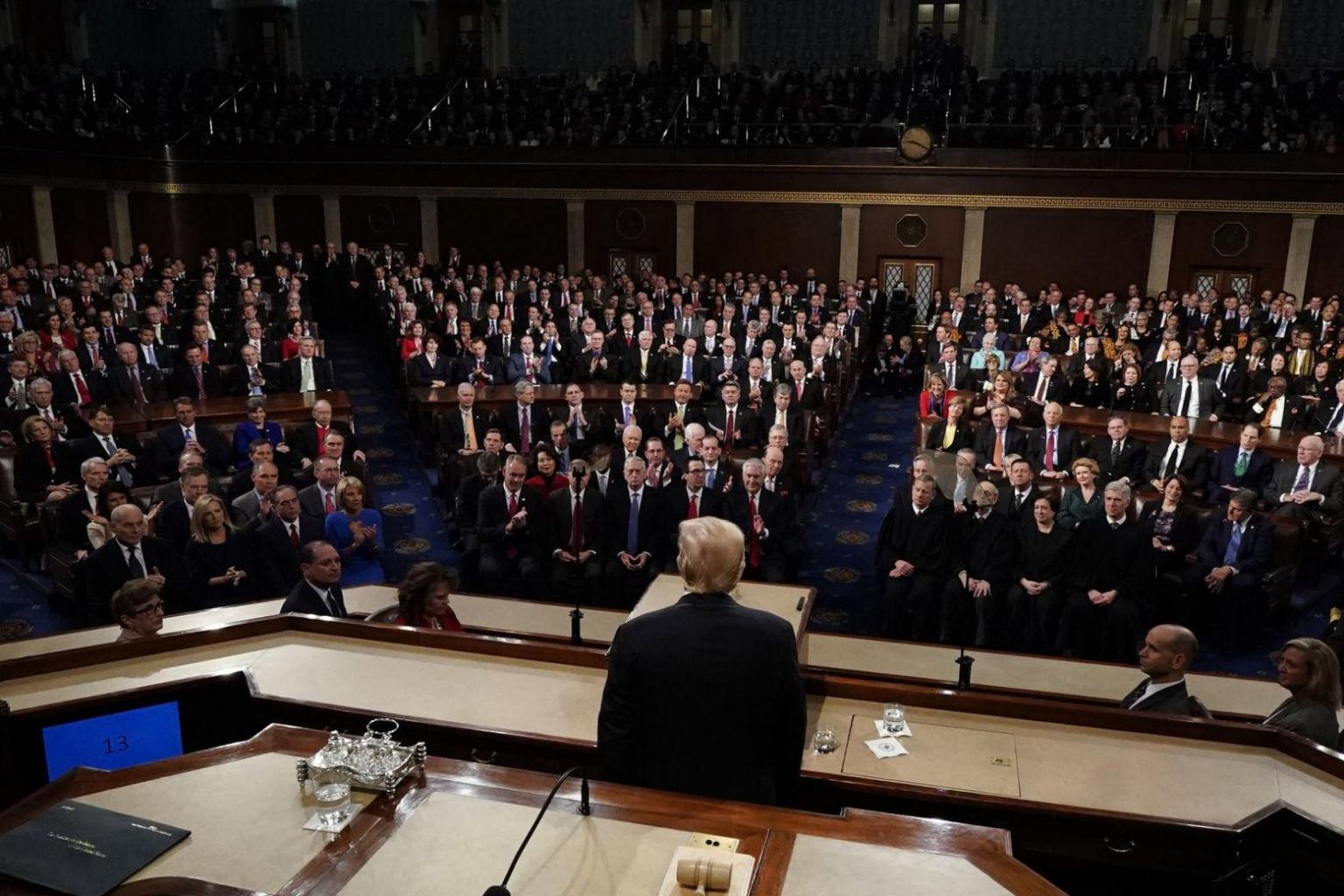 US President Donald Trump delivers his first State of the Union from the floor of the House of Representatives in Washington, DC.