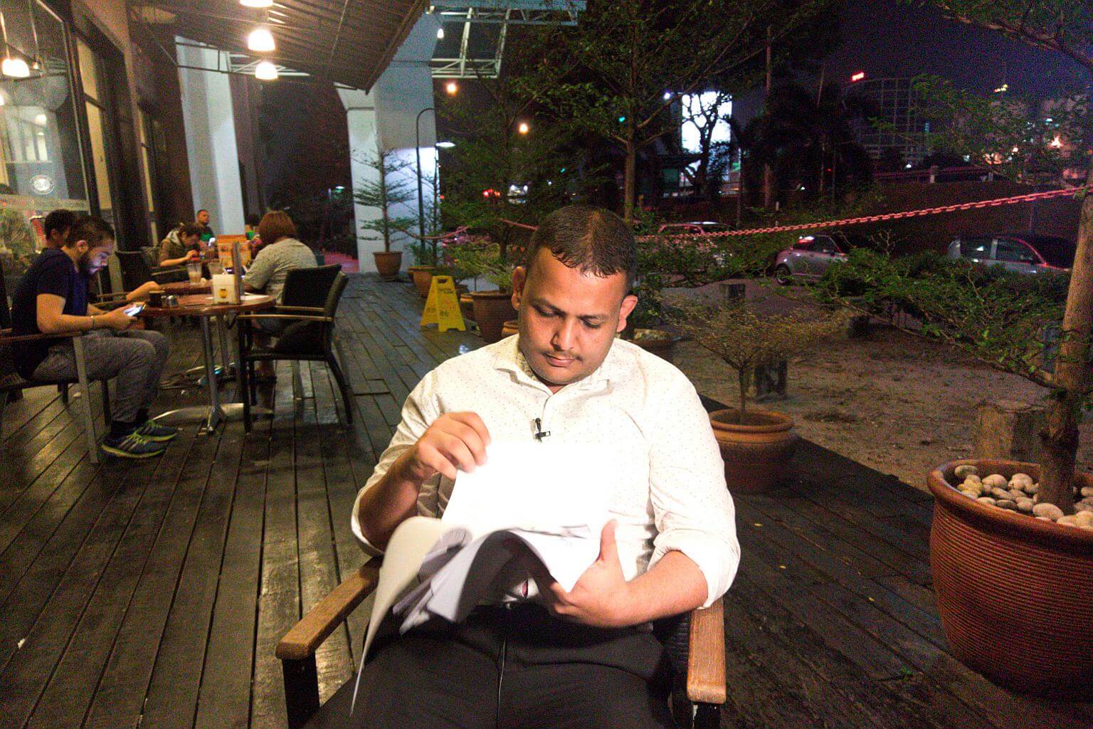 Yemeni Rafek Ahmed Mohammed Al-Sanani, 22, looks through documents as he speaks with Reuters in Serdang, on July 20, 2017.