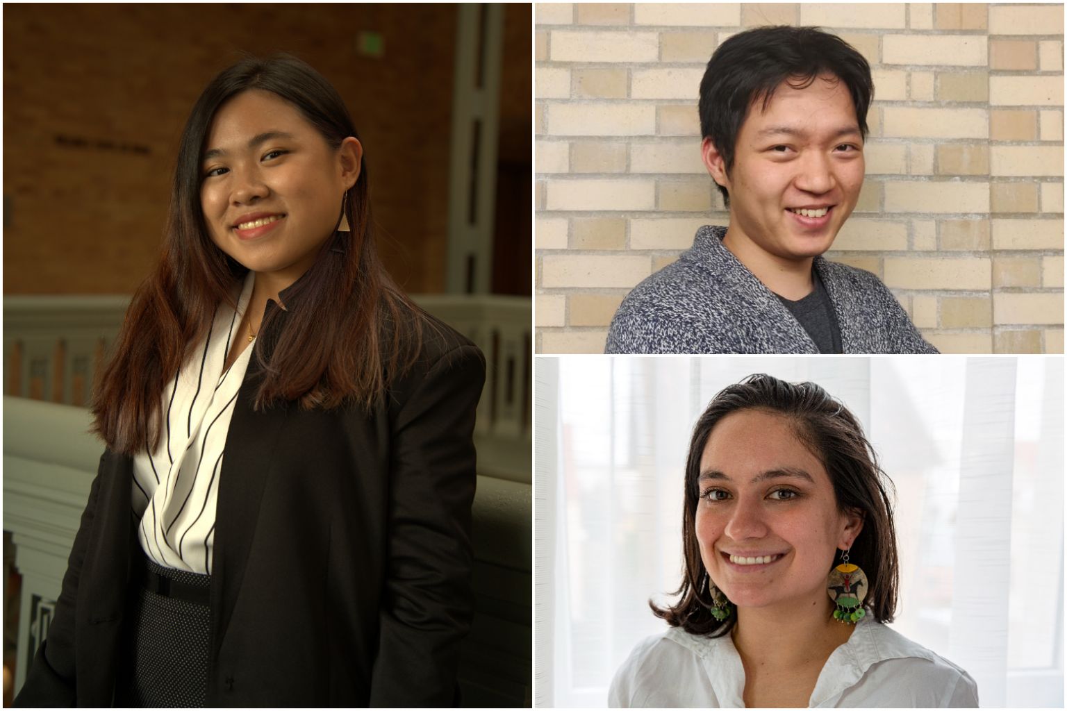 (Clockwise from left) University of California, Berkeley, student Joellene Yap, Carnegie Mellon University student Yang Gan and Johns Hopkins University student Emma Giron.