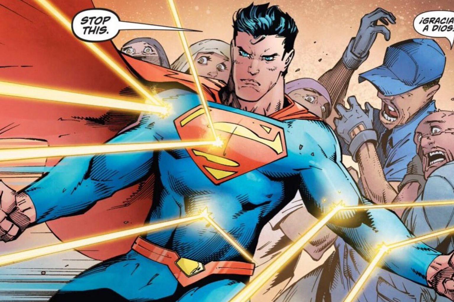 In the latest edition of the Action Comics series, the Man of Steel intervenes to stop an out-of-work factory worker as he is about to kill some immigrants.