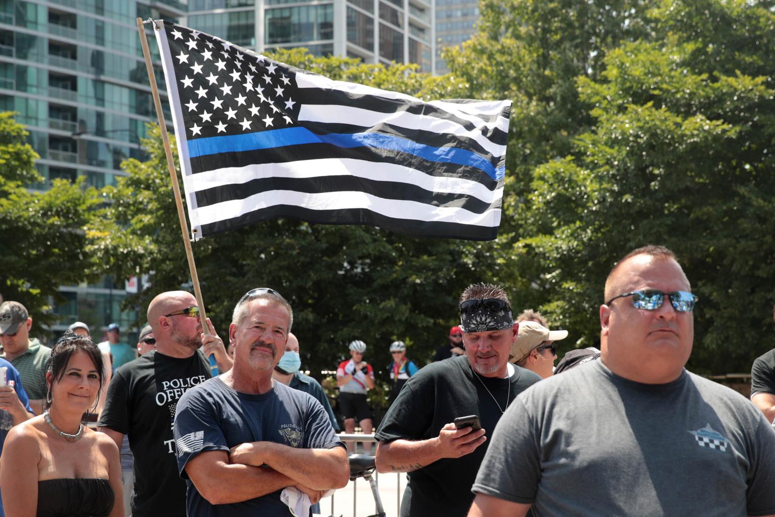 People participate in a Blue Lives Matter rally in Grant Park, on July 25, 2020, in Chicago, Illinois.